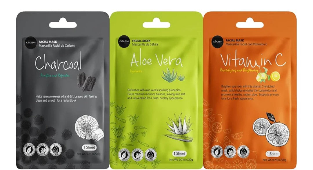 Paquete variado de 3 mascarillas faciales de hojas hidratantes, mascarillas coreanas para el cuidado de la piel.