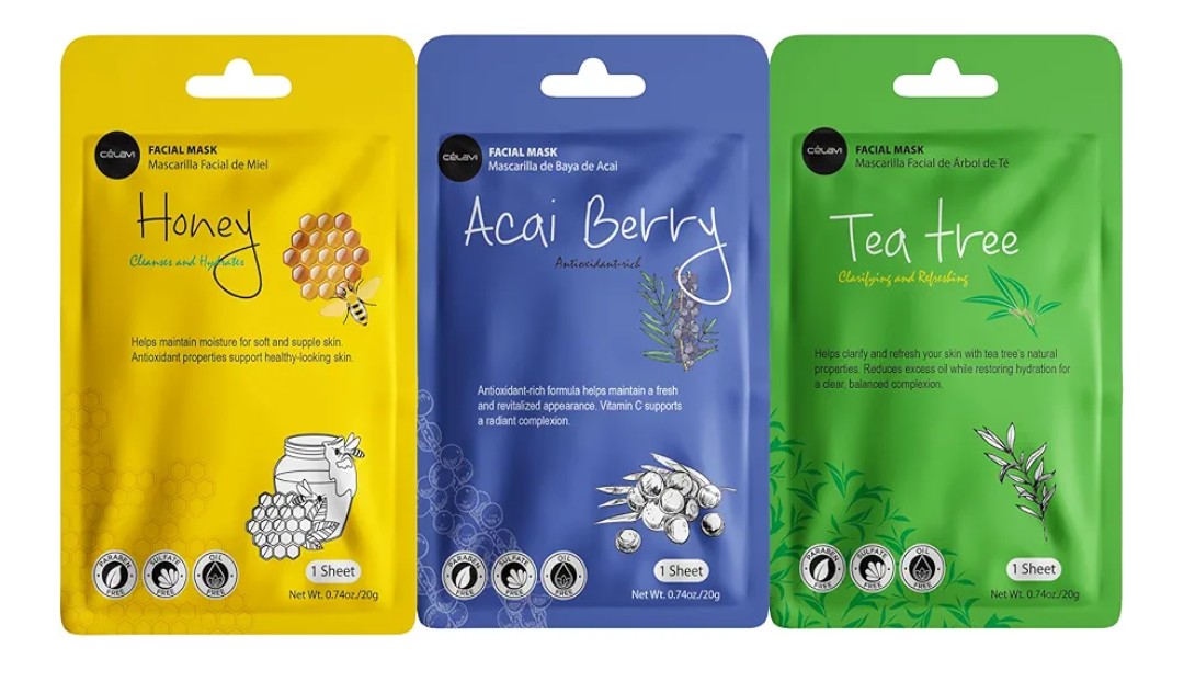 Paquete variado de 3 mascarillas faciales de hojas hidratantes, mascarillas coreanas para el cuidado de la piel.