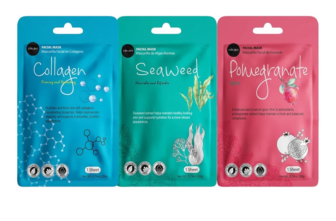 Paquete variado de 3 mascarillas faciales de hojas hidratantes, mascarillas coreanas para el cuidado de la piel.