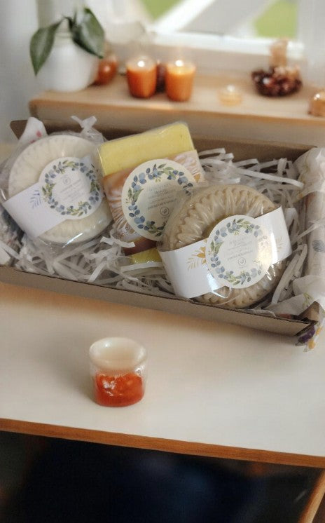 Ambos jabones son productos artesanales, elaborados con insumos naturales, como la miel ,el aceite de coco aceites de almendras. libres de químicos y preservantes. Las Propiedades de los jabones almendras,avena y miel es conocida por su capacidad para hidratar y suavizar la piel. Los jabones de arroz y menta son conocidos por sus propiedades beneficiosas para la piel, ideal para pieles sensibles. El jabón de cúrcuma Y limón cuenta con ingredientes naturales como limón, cúrcuma, dejando tu piel con un aspecto fresco.